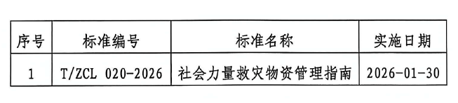 中慈联发布《社会力量救灾物资管理指南》团体标准